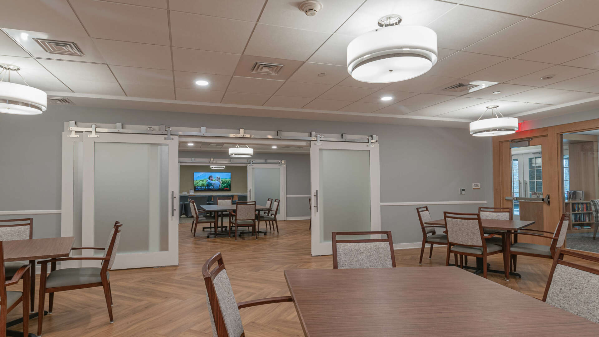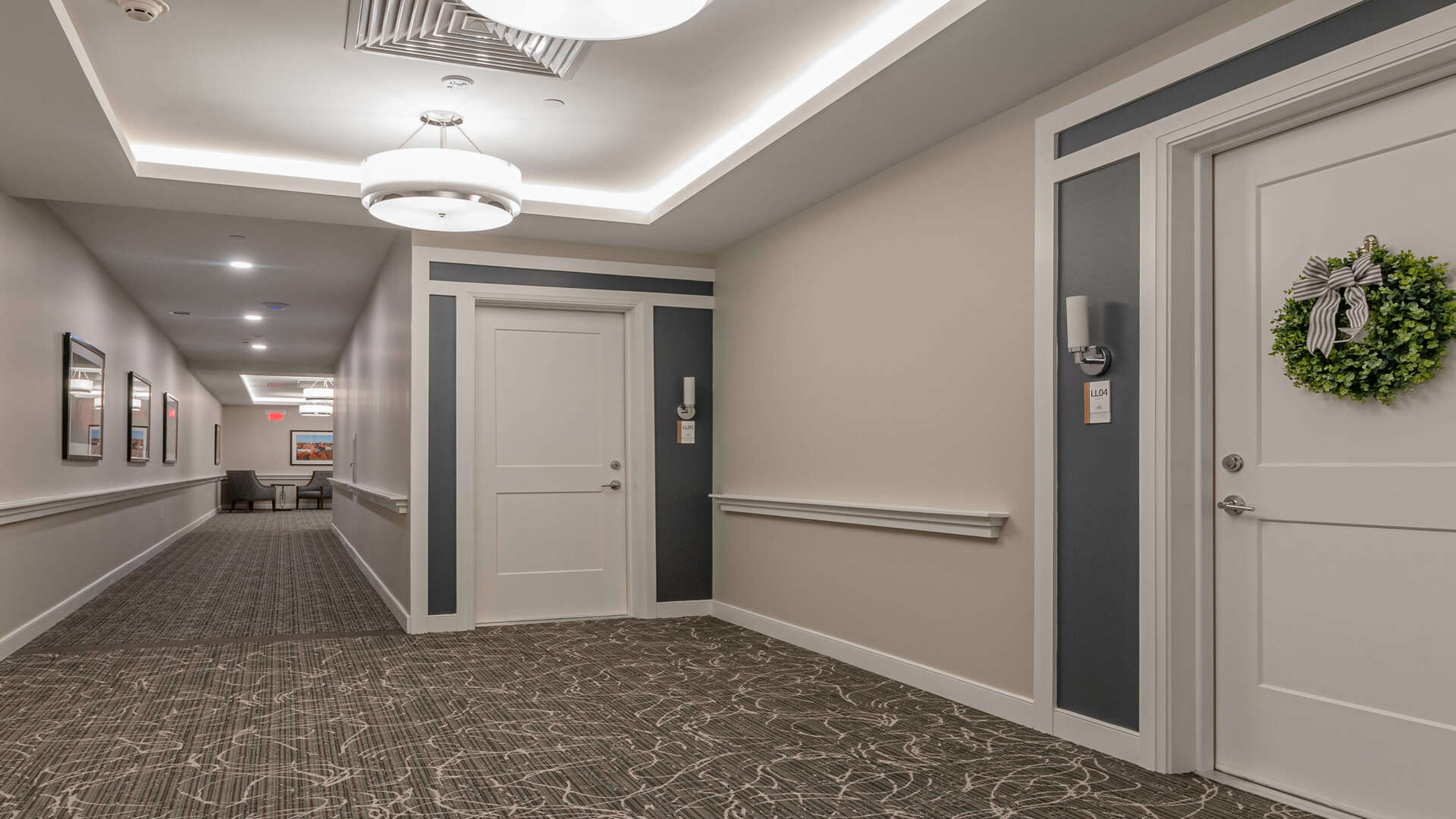 As a general contractor, we are proud to announce the completion of a new assisted living facility that includes both memory care and assisted living. The facility boasts a beautiful open courtyard, which provides residents with a tranquil and serene outdoor space to relax and enjoy nature. Additionally, the building features two large terraces, offering residents stunning views of the surrounding area. The grand open staircase, which serves as a focal point upon entry, is an impressive architectural feature that adds a touch of elegance and sophistication to the building. Overall, we are thrilled with the outcome of this project and look forward to seeing residents enjoy their new home.